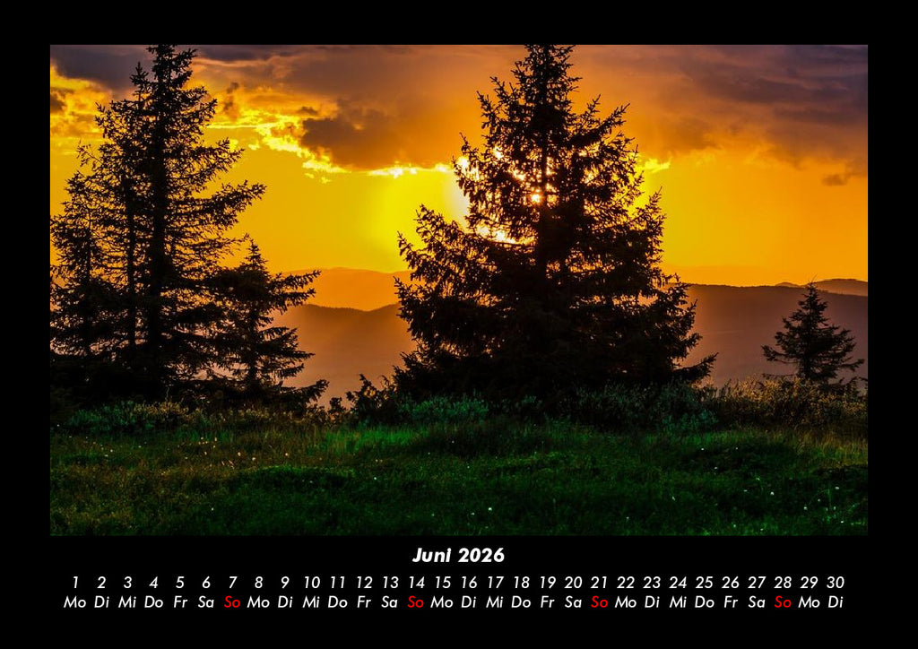 Entdecken Sie den Sonnenuntergang Kalender 2026 – ein hochwertiger Fotokalender aus der Kategorie Natur. Dieser Monatskalender begeistert mit beeindruckenden Motiven: Monatskalender mit Bild-Motiven aus Fauna und Flora, Natur, Blumen und Pflanzen.